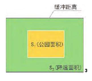 将单位面积公园的降温面积称为降温效率,将降温面积(S2)与公园面积(S1)的比值定义为降温效率(ηS)。其中,降温面积指降温范围(Lmax)与公园外轮廓之间的面积。
