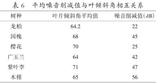 ③叶倾斜角对树木的降噪能力没有太大影响;