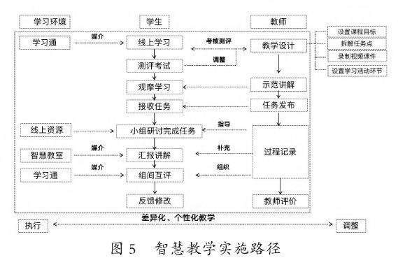 对于智慧教学的研究,国内外学者从不同角度进行了深入的理论和实践探索,本研究重点参考了华东师范大学祝智庭教授[1]对智慧教育的定义,他认为应该利用多种信息技术融合营造生态的学习环境,通过分析教学过程中的数据,利用教学智慧和文化智慧,本着“精准、个性、优化、共享、思维、创造”的教学原则,为教师提供施展高效教学方法的平台环境,让受教育者有良好的学习体验,使其由不能变为可能,由小能变为大能,进而达到培养良好的人格品性、较强的行动能力、较高的思维品质、较深的创造才能的人才培养目标[4]。
