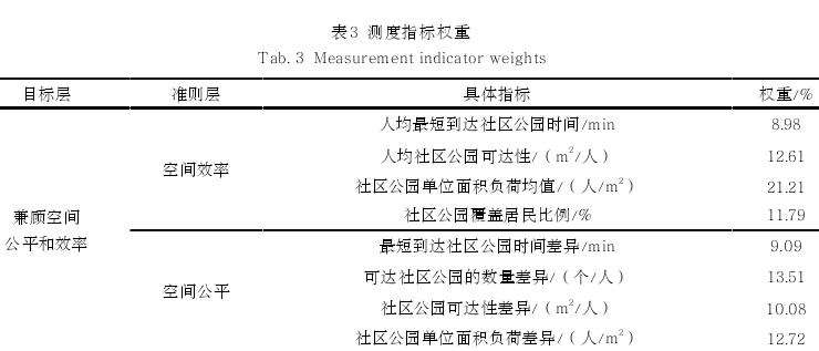【方法】以苏州市中心城区为例,基于多源数据、居住区分析单元和城市尺度构建测度指标体系,引入 CRITIC-熵权法,测度社区公园布局兼顾空间公平和效率的综合指数。