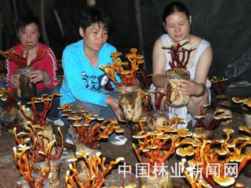 毛秀兰原来专业从事食用菌生产,从2008年开始,她从北京农业大学和山东引进灵芝菌种,并到山东省冠县学习培训。经过3年努力,2010年她成功培育出赤灵芝、鹿角灵芝和紫花灵芝菌盆景500多盆,销售收入4万多元。从今年年初到现在,她又培育了1000多盆灵芝菌盆景,市场销售看好。图为毛。