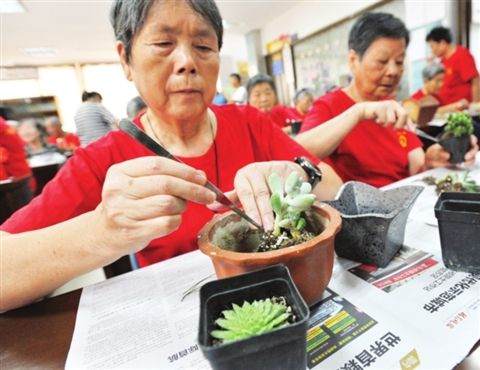 苏州一社区组织老人制作盆景 丰富晚年生活